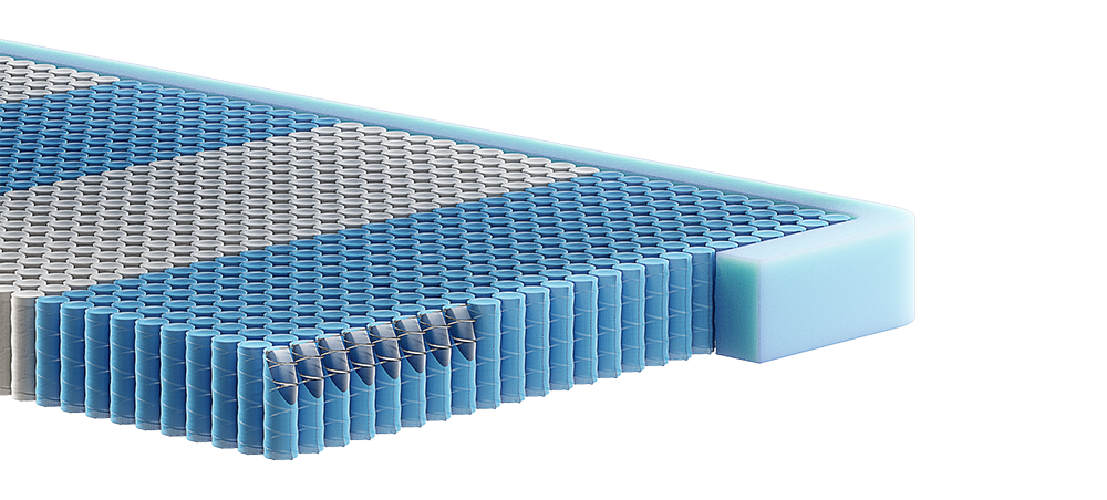 Отличительной особенностью данной модели является использование 5-ти зонального пружинного блока с 1000 пружинами на спальное место - системы классических независимых пружин с усиленными поперечными и продольными зонами, расположенными в местах наибольшей нагрузки. Конструкция матраса включает в себя 5-зон жесткости. Каждая зона различается размером пружины, чем "тяжелее" зона, тем больше диаметр пружин.